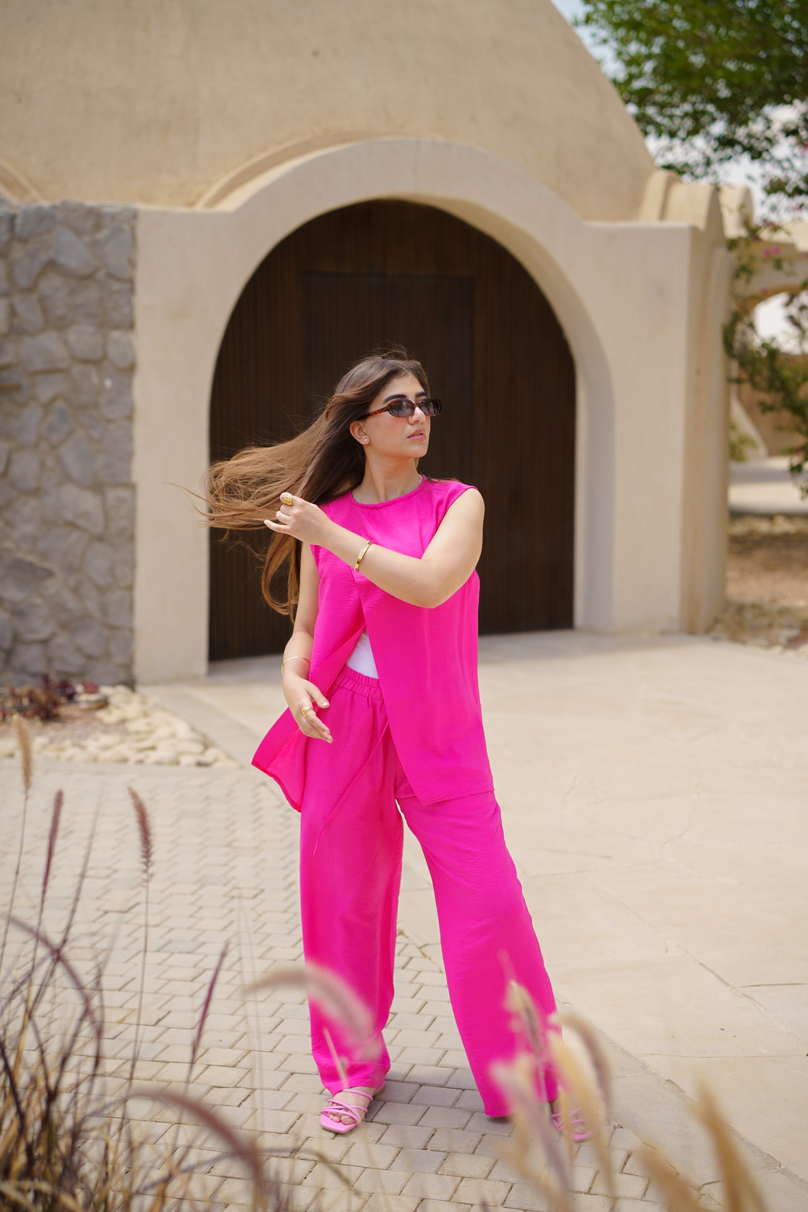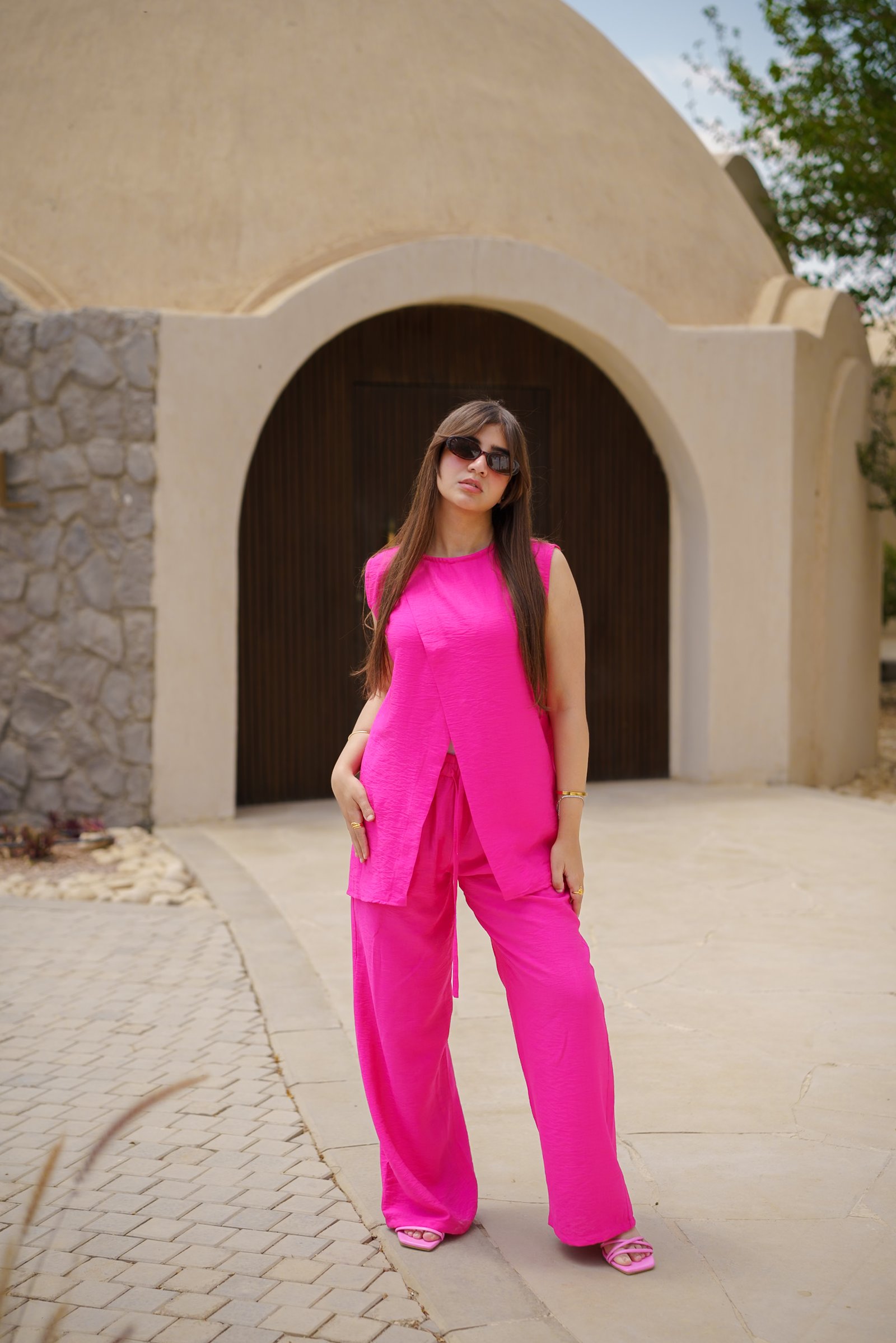 Jamila linen set – hot pink